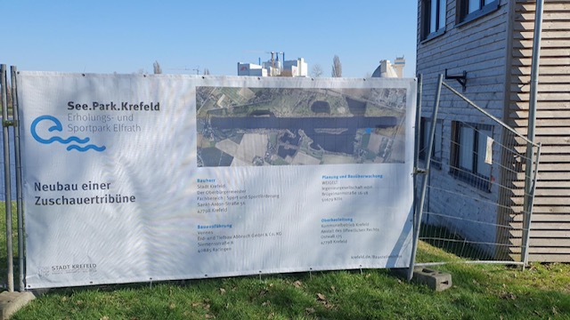 Das Projekt „Zuschauertribüne“ an unserer Regattastrecke hat nach vielen Stadion-Runden die Zielgerade erreicht. Der Bauzeitenplan zeigt eine Fertigstellung Ende Juni, so dass sie zur Triple vom 10.-12. Juli zur Verfügung stehen soll.Die Einweihung ist mit der Stadt bereits besprochen und soll am Freitag, 10. Juli um 15:30 Uhr stattfinden.